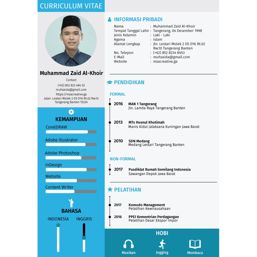 Berisi nama, alamat, nomor telepon, dan alamat email anda. Dalam cv biasanya tertulis beberapa informasi penting, seperti data diri, pendidikan, pengalaman magang, organisasi, hingga keterampilan. Bagian ini berisi hal menarik pada diri pencari kerja, saatnya untuk mempromosikan diri kepada hrd perusahaan yang membuka . Intinya dalam peruntukannya sebagai syarat melamar kerja, cv lamaran kerja berguna sebagai alat mempromosikan diri pada perusahaan. Ini pastinya wajib dong untuk dimasukkan ke dalam cv, kalau nggak, gimana caranya penyedia beasiswa akan menghubungi kamu jika .